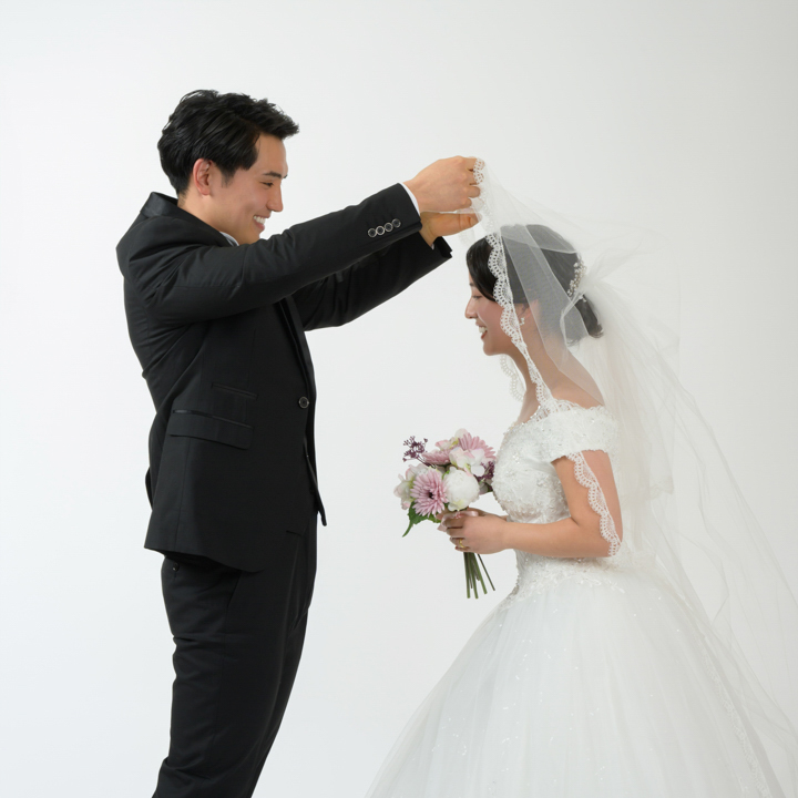 ウェデイングドレスやタキシードといった洋装まで、撮影用として一式レンタル提供可能です。